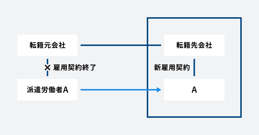 転籍とは、従来の使用者(転籍元)との労働契約を終了させ、新たに別会社(転籍先)との労働契約関係に入ることをいいます。