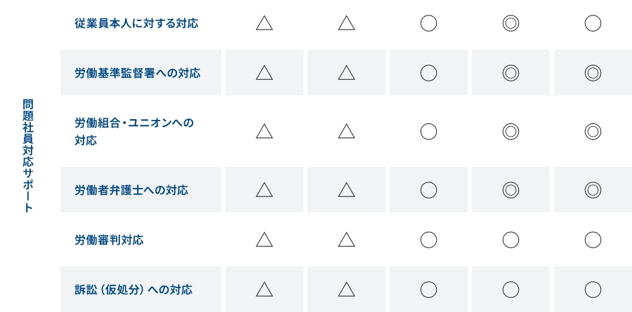 問題社員対応サポートの各プランの料金対応