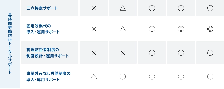S・SSプランの場合:社内研修・残業禁止を守らない従業員への指導を含む全てのサポート