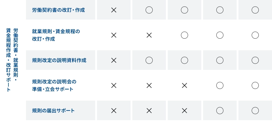 Aプランの場合:就業規則・賃金規程の改訂・実際の支給フォローをサポート