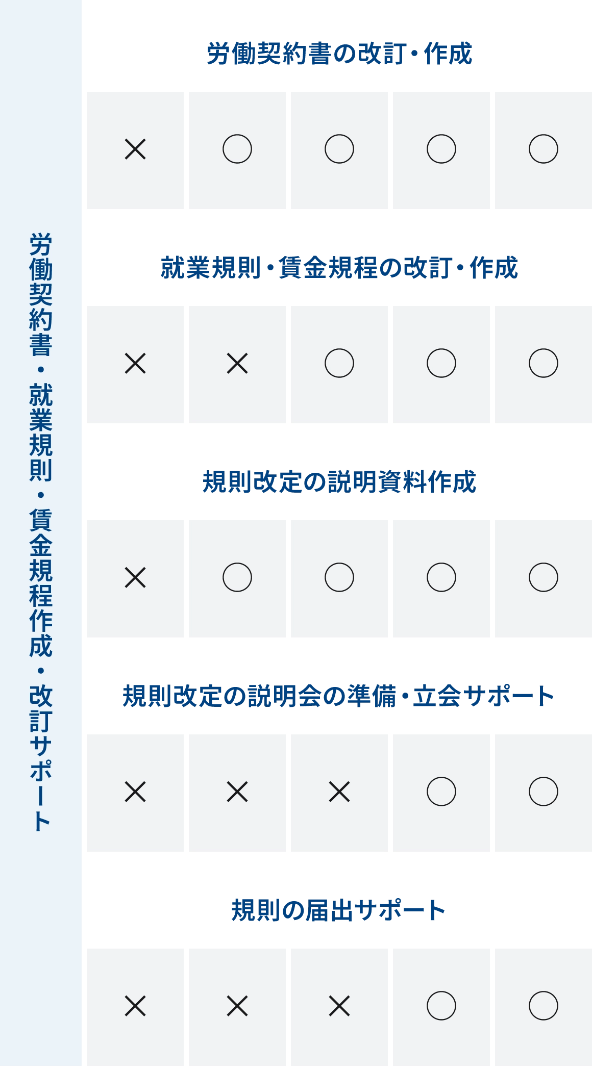 労務管理の分野・ステージごとに応じて、労働専門弁護士がどのようなお手伝いができるのかをメニュー化しました。