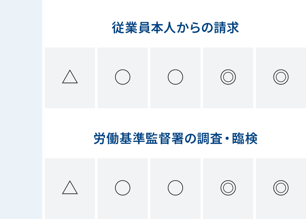 会社の現在の労働時間管理方法についてチェックし、リスクのあぶり出しを行います。タイムカード・業務日報その他のツール等の資料を全面チェックします。