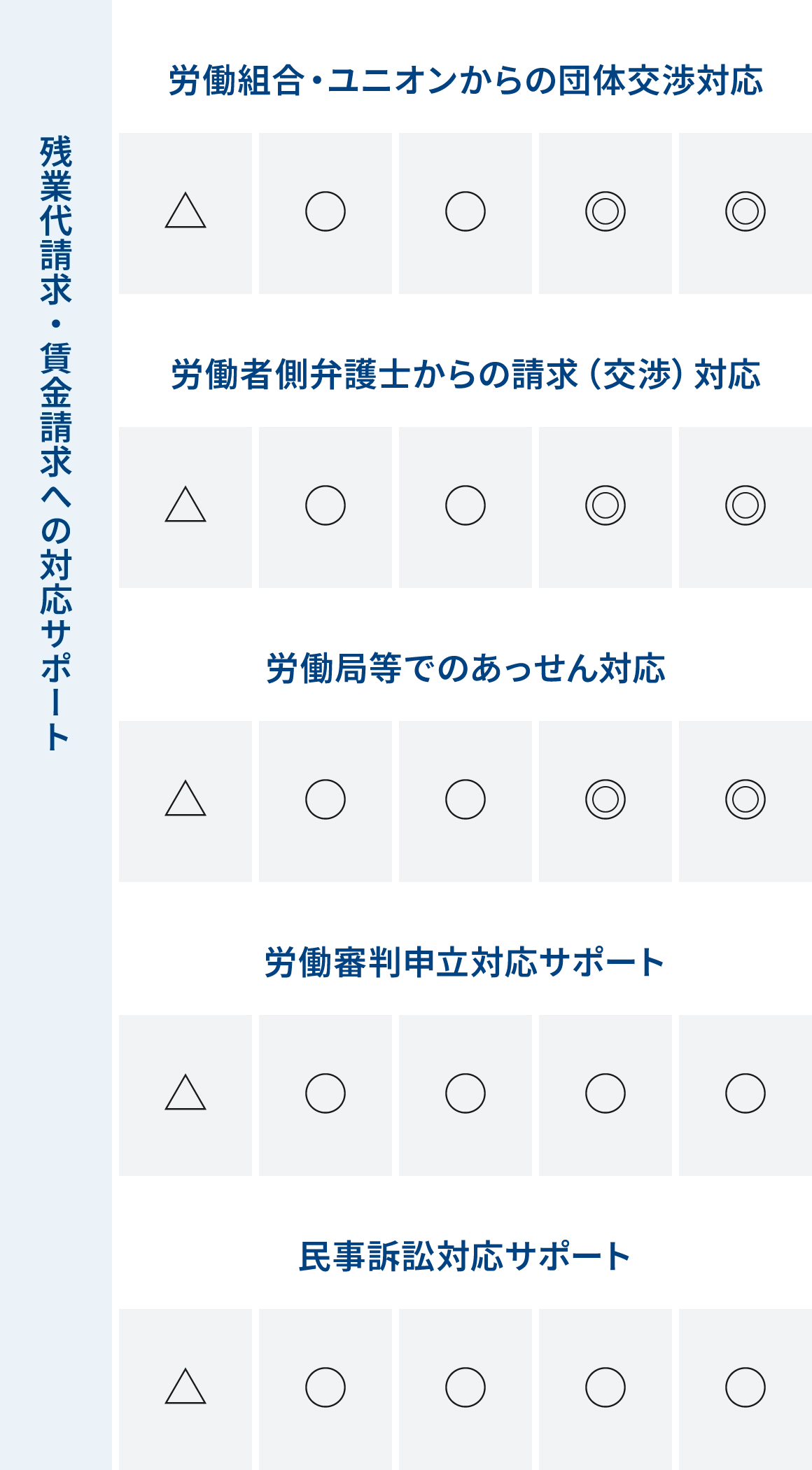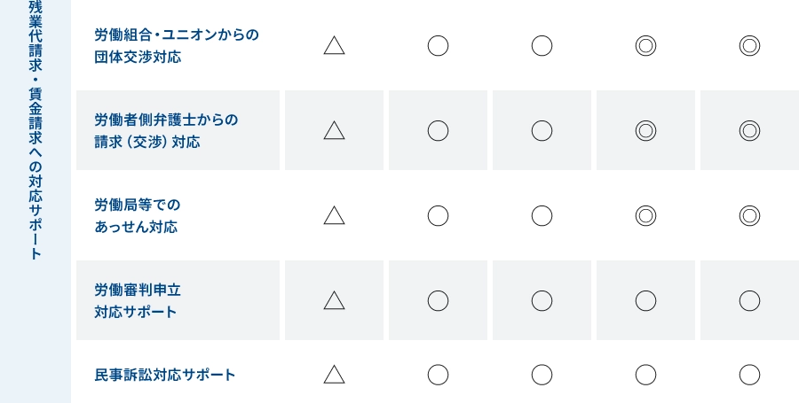 残業代請求・賃金請求への対応サポートの各プランの料金対応