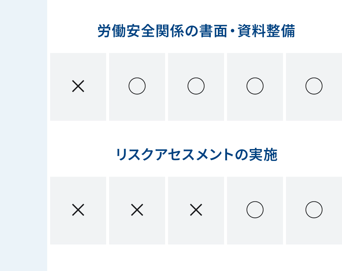 労働安全衛生法によって求められるのがリスクアセスメントです。