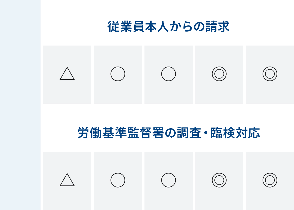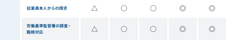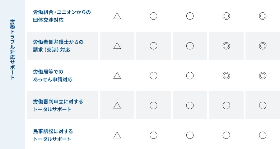 労務トラブル対応サポートの各プランの料金対応