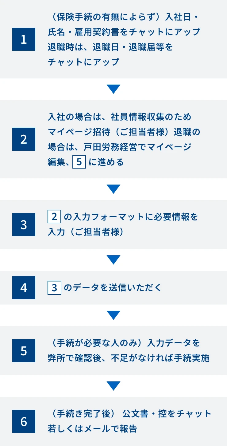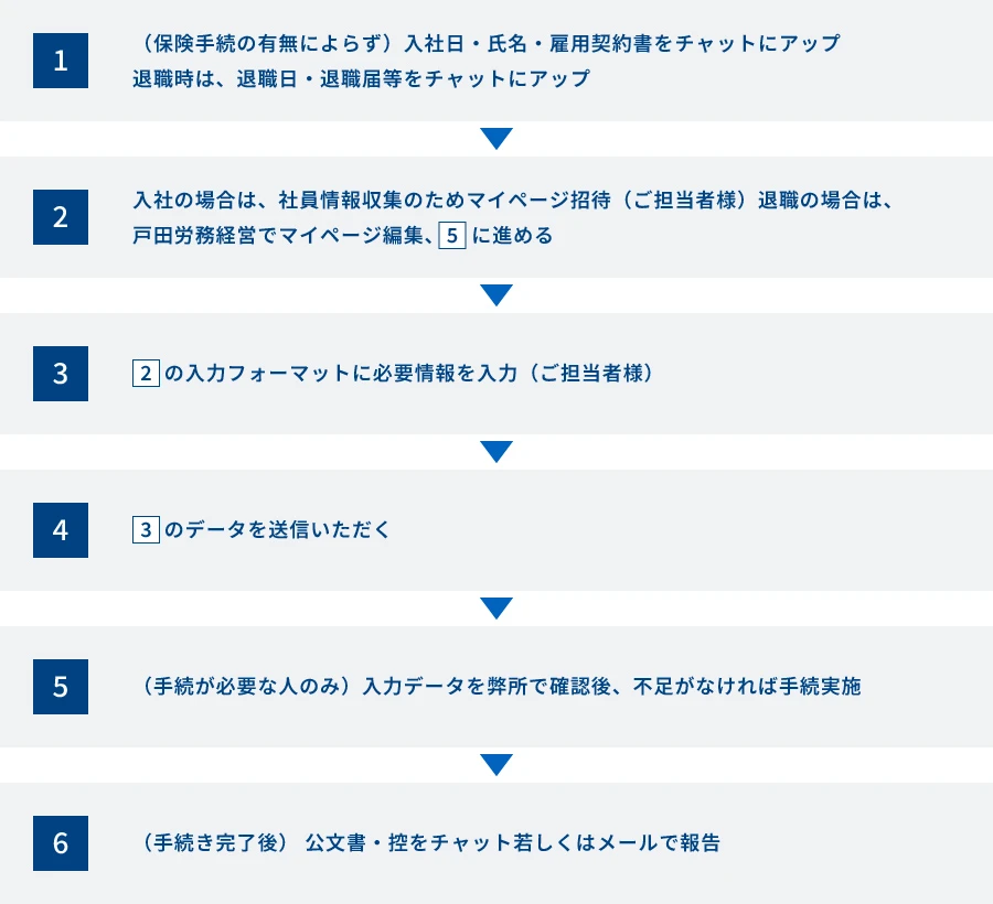 各サポートの今後の流れ~社会保険手続き代行~